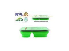 2 Compartments Eco- Friendly Green Collapsible Silicone Lunch Box Of Food Container
